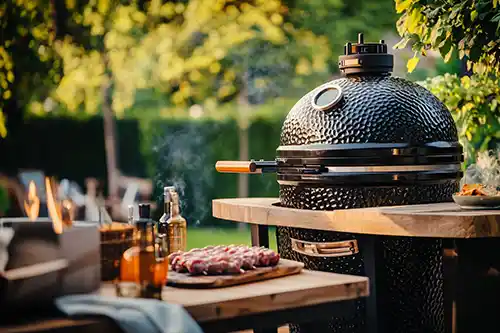 Maîtrisez l’Art du Fumage, fumoir a viande vertical avec un fumoir BBQ extérieur sur une terrasse de jardin